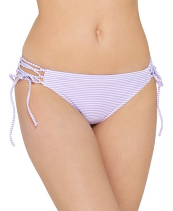 Create a perfect fit with these bikini bottoms from Hula Honey, hipsters in soft stripes with crisscross ties at the sides. Imported Moderate bottom coverage Lined Sits at hips Ties at sides Materials & Care Hand wash Nylon/spandex; lining: polyester