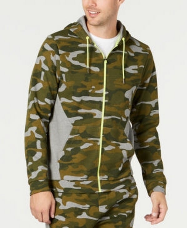 Vibrant details and contrast panels bring a fresh look to camo in this zip hoodie from ID Ideology.Box G131 (2XL/Native Green-1)