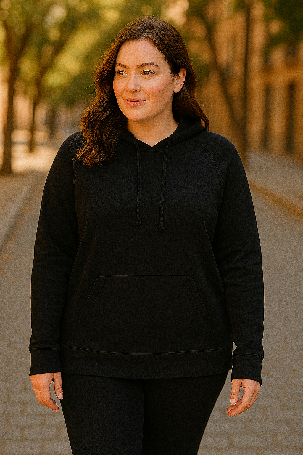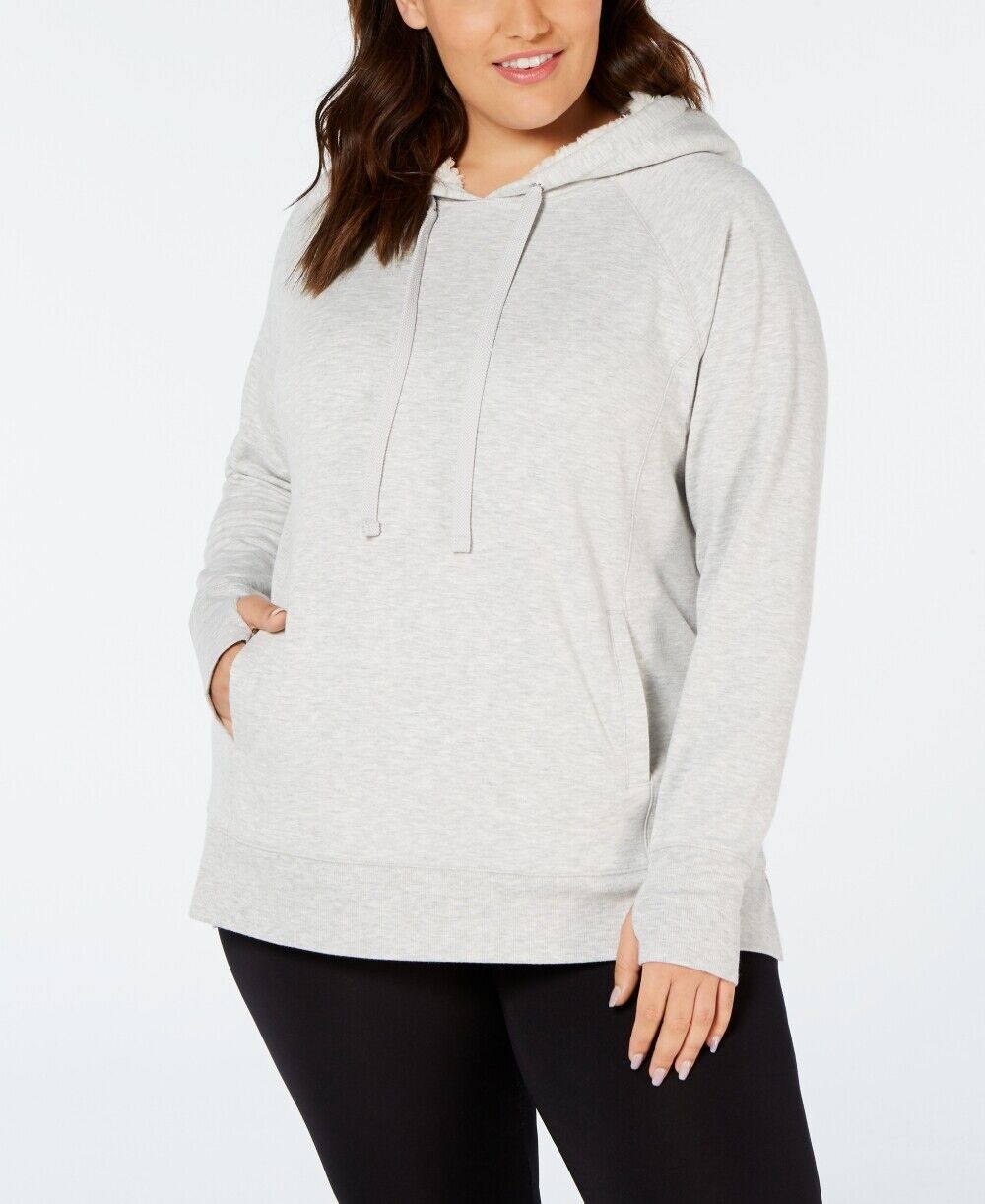 [Fleece lining Attached hood with drawstring; long raglan sleeves with thumbholes; kangaroo pocket Body, lining: polyester/rayon/spandex Machine washable]