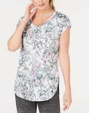 A rounded hem lengthens the coverage of this semi-fitted T-shirt from Ideology, designed in a floral print that adds casual style to an active classic. Approx. model measurements: height: 59; bust: 32; waist: 25; hips: 35 Hits at hip with rounded hem; semi-fitted INSPIRED FOR: Athleisure Scoop necklin Polyester/rayon/spandex Machine washable Imported