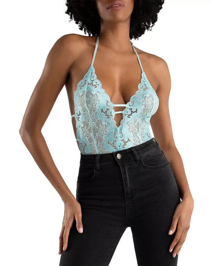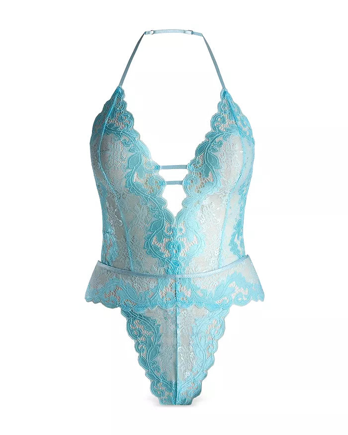 PRODUCT DETAILS Plunging scalloped-edge front with strappy detail Pull-on style Adjustable halter strap Strappy detail and lace panel at back Thong-back style Imported Web ID: 4318688 SIZE & FIT Fits true to size, order your normal size Model measurements: 510 height, 33.5 bust, 23.5 waist, 34.5 hips, wearing a size small MATERIAL & CARE Nylon/spandex Hand wash