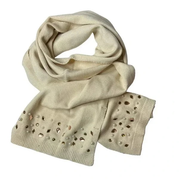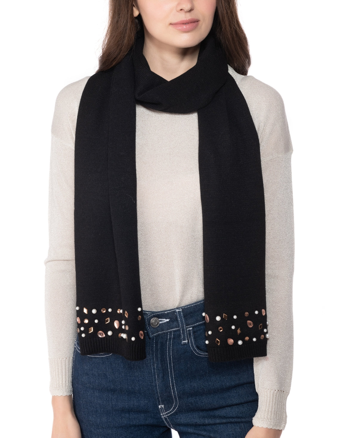 Dimensions: 70 x 10; one size Beading and imitation pearl embellishments at ribbed edge Rayon/polyester/nylon
