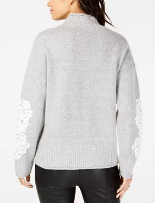 I.N.C Lace-Sleeve Mock-Neck Sweater, Size Petite Medium