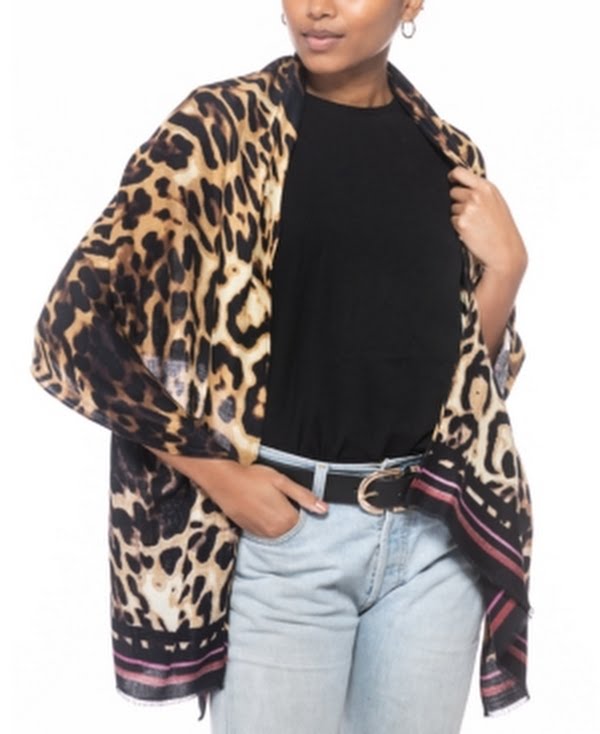 Inc International Concepts Striped Leopard-Print Wrap, Womens - Handbags & Accessories Accessories - Hats, Gloves & Scarves.
