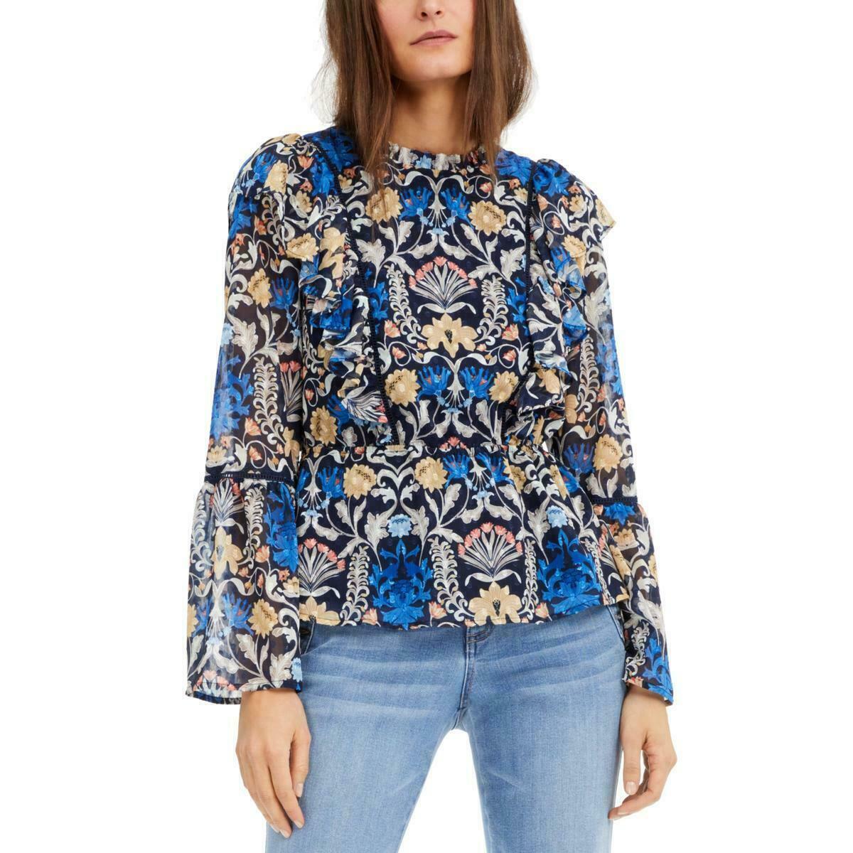 INC Womens Floral Print Ruffled Blouse, Size Large