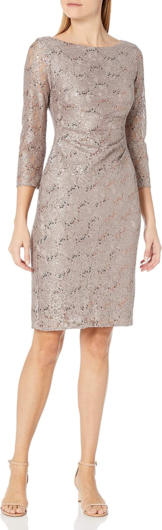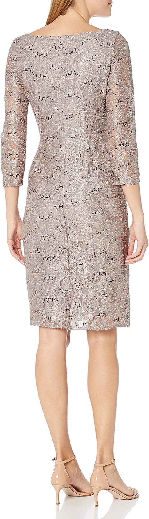 Unlined lace speedboat neck. Knee-length, sheath silhouette
