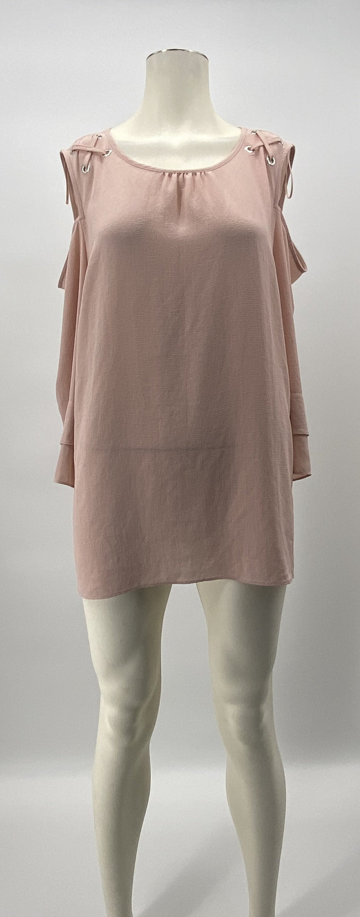 Equal parts effortless and fashionable, this scoop-neck T-shirt from JM Collection is styled with cool shoulder cutouts and a fluid swing hem. Scoop neckline Shoulder cutouts; curved swing hem Relaxed fit; hits at hip Due to generous sizing, we suggest sizing down for the perfect fit Created for Macys Same Great Fit. Same Great Brand. New, Fresh Label Rayon/spandex Machine washable