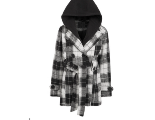 A pretty peacoat just for her! This version from Jou Jou features a cozy contrast hood and a self-tie belt.Due to variances in monitor color, and lighting, the color of some items may differ slightly from the photographs