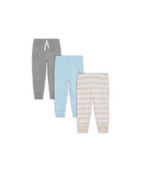 In solids and stripes, our Koala Baby three pack pant set in oatmeal heather is easy to mix and match with a variety of different bodysuits and cozy tops. This set includes three pairs of cotton interlock pants with an easy pull-on fit, a drawstring waistband, and rib knit cuffs. Set includes- 3 pants Elastic waist pants Rib-knit bottom Cotton Machine Washable Imported