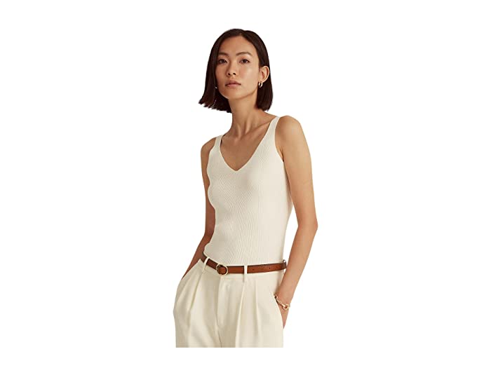 Crafted for an all-day warmth and comfort, the LAUREN Ralph Lauren Cotton-Blend Sleeveless Sweater is a versatile piece to experiment with your style. V-neckline and spaghetti shoulder straps. Allover ribbed knit texture design. Straight hemline. 60% cotton, 40% modal. Hand wash. Imported.