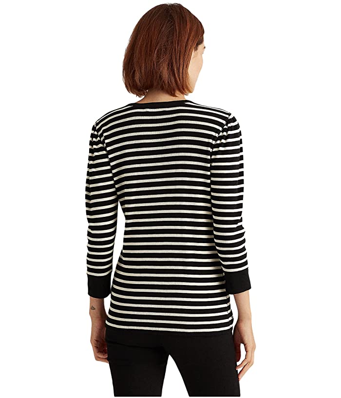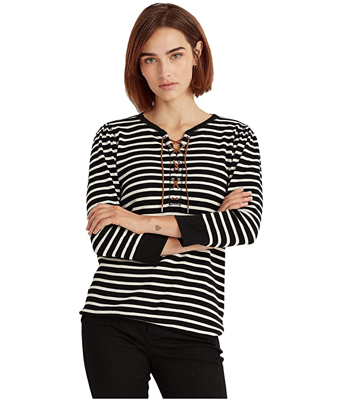 Cut from breathable waffle-knit cotton, Lauren Ralph Laurens striped three-quarter-length-sleeve top is distinguished by a lace-up placket with a supple faux-suede drawcord. Polished signature cord ends and an embroidered Lrl monogram at the hem.