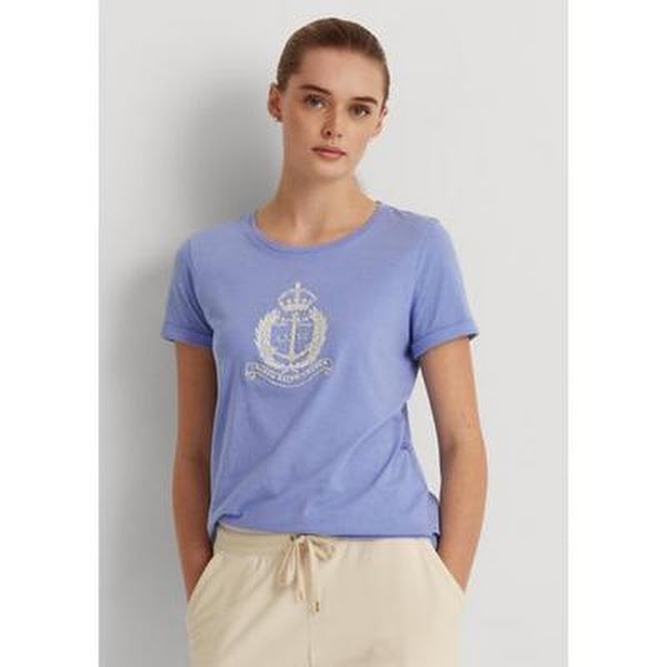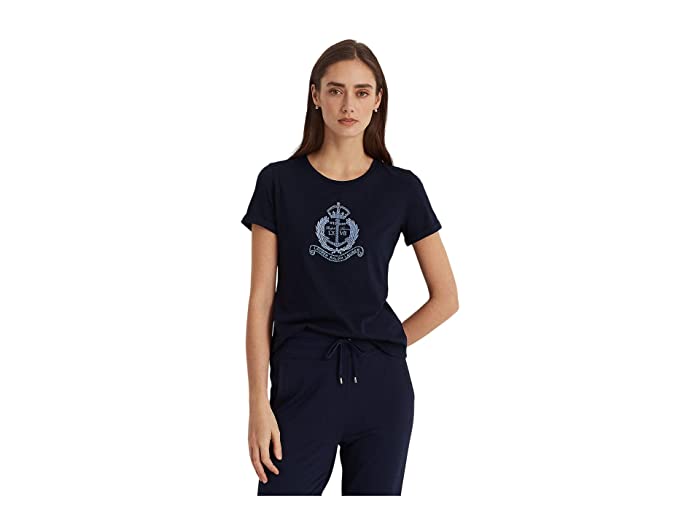 Cut from a soft cotton blend, this tee features a nautical-inspired graphic with detailed embroidery and beadwork at the chest. Relaxed fit. Intended to hit at the hip. Size medium has a 25.5 body length. Crew neck. Rolled short sleeves. Anchor print.