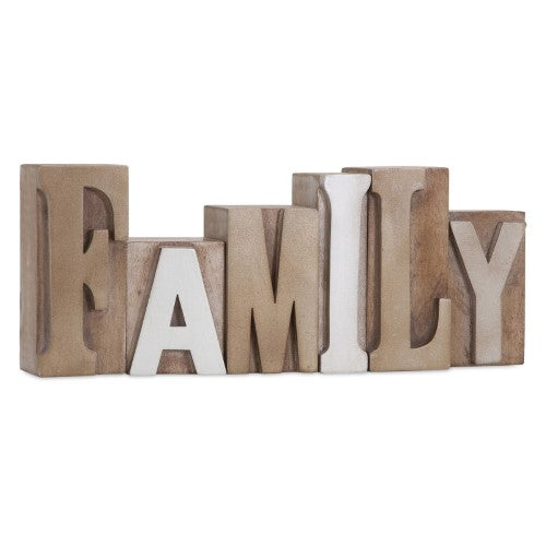 Letterpress Word - Family. Brand Benzara Color Brown Assembled Product Weight 4.6 lbs Manufacturer Part Number 95737 Manufacturer Benzara Material Wood, Mango Wood Assembled Product Dimensions (L x W x H) 14.50 x 14.50 x 6.00 Inches