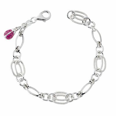 This 8 inch Italian sterling silver linked bracelet “add a little luck” features alternating knife-edge, plain and double cable design with a unique magenta enamel ladybug. This unique bracelet will give its wearer an elegant way to show off her lucky side.