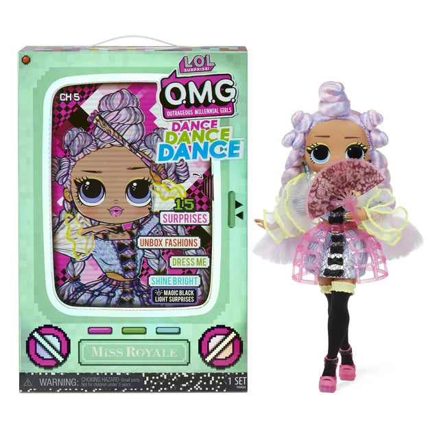 OMG we sisters are ready 2 groove. We are here to Remix your moves and create the ultimate Dance Dance Dance with fierce style. Everyone will be Dancing with the B.B.s as you unbox dance moves and put them together in your own way. Get out on the dance floor and dance UR heart out! Now that we have the ultimate LOL Surprise music we need the ultimate dance moves. Throughout the series fans will be able to collect and learn dance moves then remix them into their own dances so they can have a dance off with their friends. Unbox LOL Surprise Dance Dance Dance OMG fashion doll - Miss Royale - with 15 surprises. Miss Royale is crushing the Vogue dance in her fierce fashions. She has stunning features beautiful hair and her own fabulous style. Plus she s the big sister to fan favorite LOL Surprise character Royal High-ney! Unbox the TV package where each character actually moves on the perforated Dance “screen” when you remove the top cover and pull the tab. Unbox Miss Royale s unique dance move and own the dance floor! Check out the magic black light surprises inside the package. Unbox her fabulous garment bag to reveal a fashion and open her hat box to find her accessories. Have her strike a pose to show off her included doll stand. The package becomes a reusable play space for Miss Royale to show off her moves. Collect all 4 LOL Surprise Dance Dance Dance OMG fashion dolls and put on the greatest dance-off the universe has ever seen! Create and remix your own choreographed dances as you unbox each doll s move!LOL Surprise fashion dolls with stylish hair outfits and many detailed accessory pieces make a perfect toy for kids including 4 year old girls and up for imaginative pretend play! As birthday gifts and gift for any special occasion dolls provide hours of social play with siblings and friends! From MGA Entertainment creators of LOL Surprise fashion and collectible dolls Rainbow High fashion dolls Na Na Na Surprise dolls Bratz fashion dolls MGA s Dream Ella fashion dolls MGA s Glitter Babyz baby dolls Lalaloopsy Poopsie Surprise girls dolls Baby born Surprise Baby Dolls and Collectibles Little Tikes kids toys and many other favorite brands.