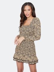 Embrace all your Fall adventures to come in the Pick Me Golden Hour Mini Dress! Lightweight, floral fabric shape this mini dress into a sweet item with long, puffed sleeves, a square neckline, and a smocked body for additional fit and comfort. Square neck Long blouson sleeves, cinched ruffle cuffs Smocked through body Tiered ruffle hem with circle embroidered trim Back concealed zip closure Imported MATERIAL & CARE Shell & lining: rayon Hand wash