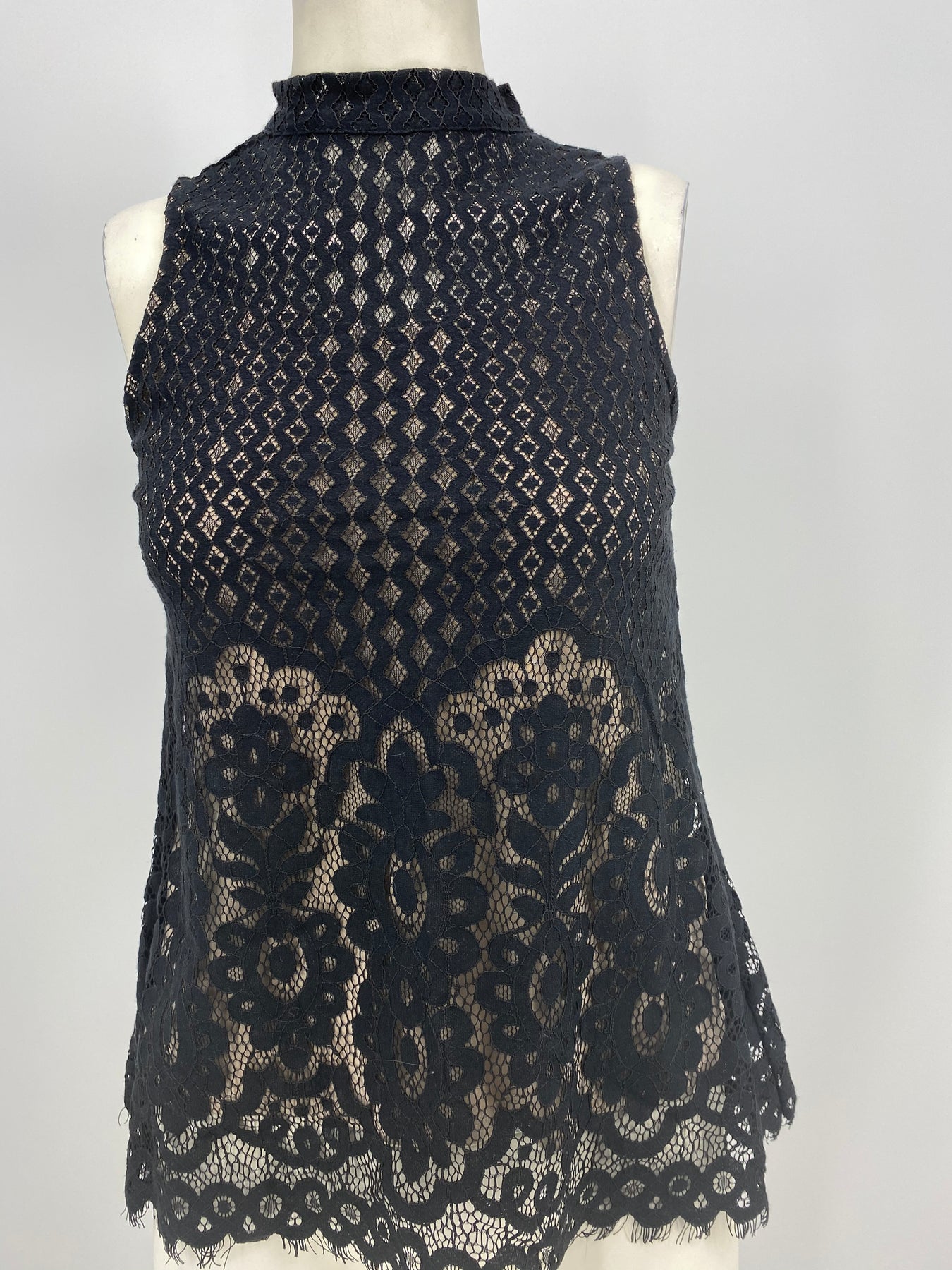 A pre-owned item in like new condition. This item shows little to no signs of use, and has been inspected for faults, flaws, basic functionality, and other unsightly blemishes. Formal high-neck top with tan lining.