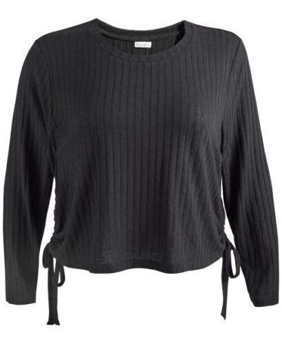 Adjust the ruching with the tunneled side ties ion this plus-size long-sleeve top from Love, Fire, finished with rib-knit fabric. Fitted; approx. 21-3/4 long Crewneck Side ruching with tunnel ties; rib-knit fabric Polyester/spandex Machine washable Imported