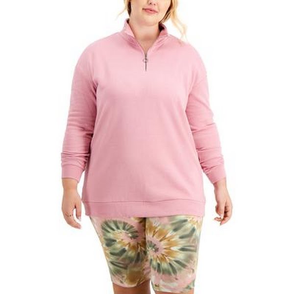 A dreamy print covers every inch of this plus size sweatshirt from Love, Fire, a cozy pick designed with a mock turtleneck that zips at the front. A dreamy print covers every inch of this plus size sweatshirt from Love, Fire, a cozy pick designed with a mock turtleneck that zips at the front. Relaxed fit Mock neck; front zipper closure Cotton/polyester Machine washable Imported
