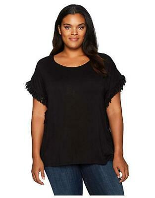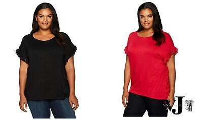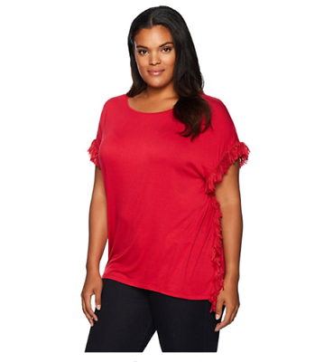 95% Rayon, 5% Spandex Imported Pull On closure Machine Wash Cap sleeves Fringe down sides of tee