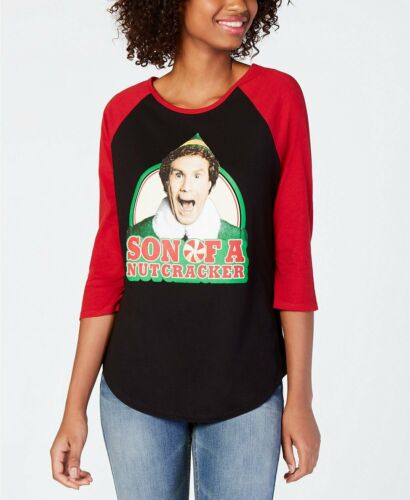 You wont be an angry elf this season with this fun and witty holiday-themed T-shirt from Love Tribe, accented by a hilarious print from the movie Elf. Approx. model height is 59-1/2 and she is wearing a size medium Hits at hip Scoop neckline Graphic print at front; curved hem 3/4-sleeves Cotton/polyester Machine washable Imported
