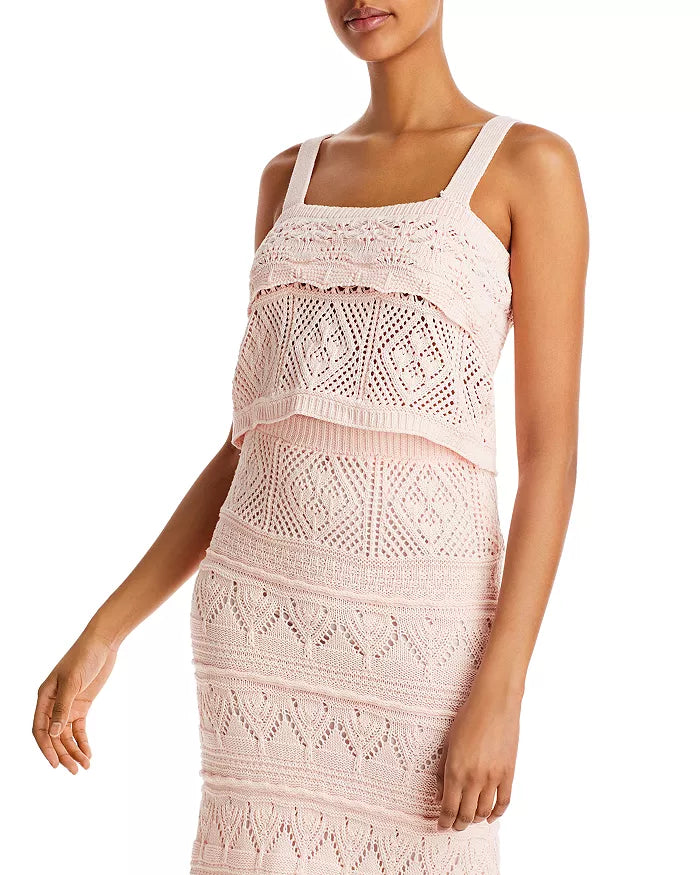 Fits true to size, order your normal size Designed for a relaxed fit, relaxed at the bust and waist Approx. 17.25 from high point shoulder to hem, based on a size small Model measurements: 510 height, 33.5 bust, 23.5 waist, 34.5 hips, wearing a size small PRODUCT DETAILS Square neck Sleeveless Pullover style Crochet design Slightly stretchy fabric Imported MATERIAL & CARE 60% acrylic/40% cotton Hand wash