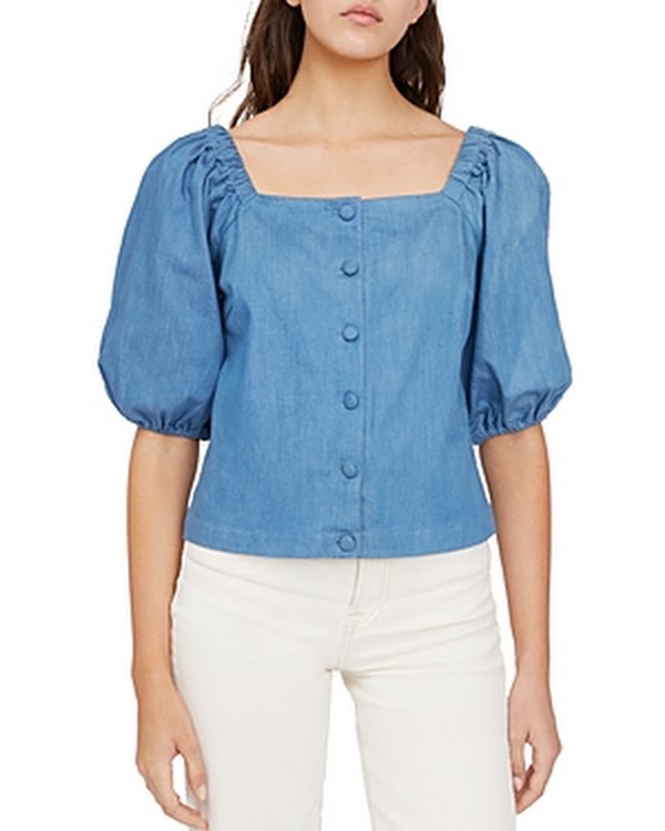 Fits true to size, order your normal size Model measurements: 510 height, 33.5 bust, 23.5 waist, 34.5 hips, wearing a size small Square neck Short puff sleeves Front button closures Elasticized trim at neckline and cuffs Part of Sunset + Spring, a unique boutique of women’s trendy clothes inspired by America’s style capitals, NYC and L.A. This item is part of our 100% Bloomingdales collection, featuring exclusive pieces you wont find anywhere else. Imported MATERIAL & CARE 69% cotton/31%viscose Machine wash
