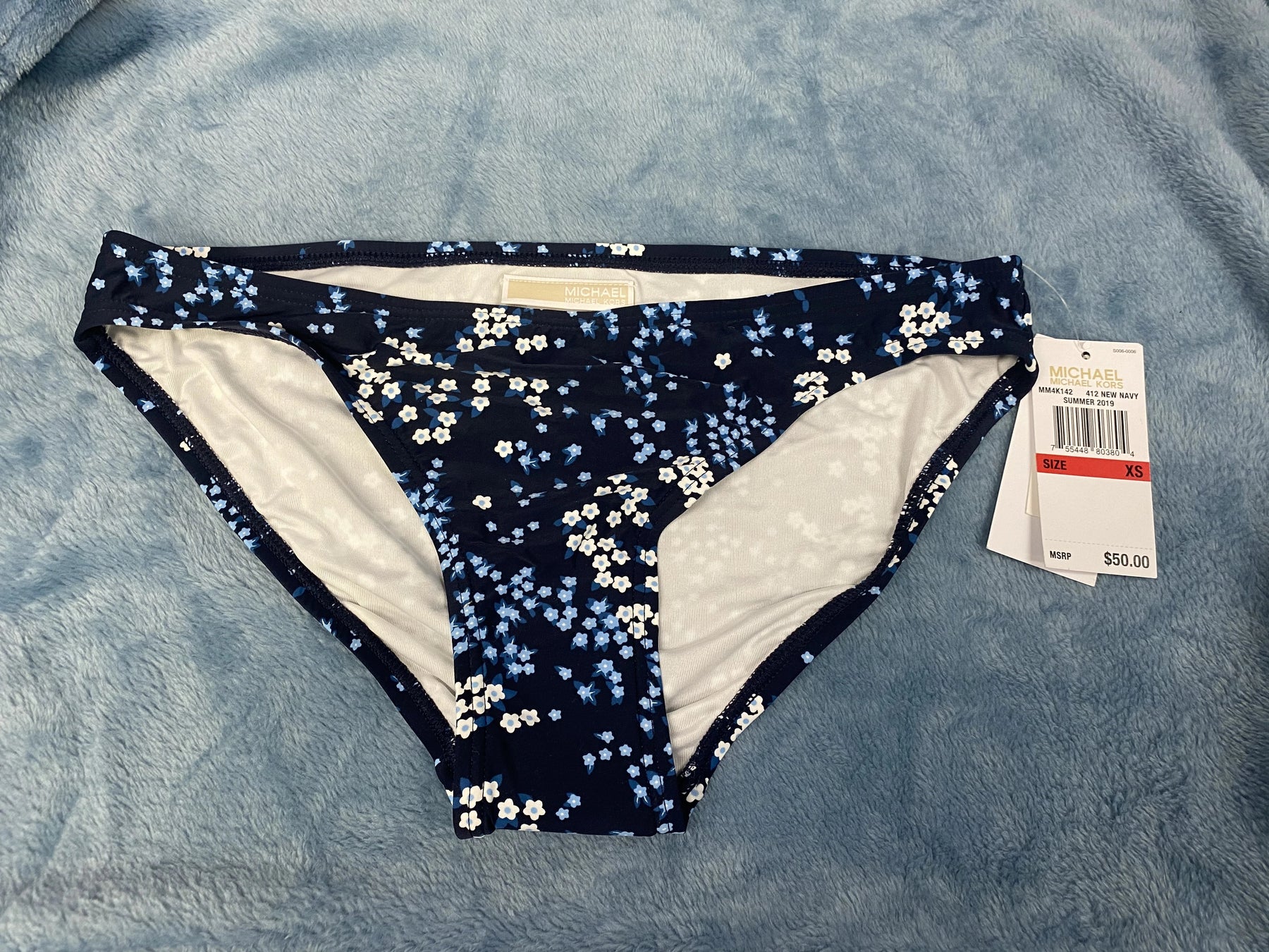 Item Notes:Pair this item with similar selections from our inventory! S/Blueearch for matching sets, including coverups, hats, and more in this style! Mix and match your swim tops with these classic hipster bottoms from MICHAEL Michael Kors! Pull-on style Model Measurements: Height 5’9; Bust 32; Waist 24; Hips 35 Model is wearing S/Blueize XS/Blue Lined S/Blueits at hips Moderate bottom coverage Body: nylon/spandex; lining: polyester/spandex Hand wash Imported