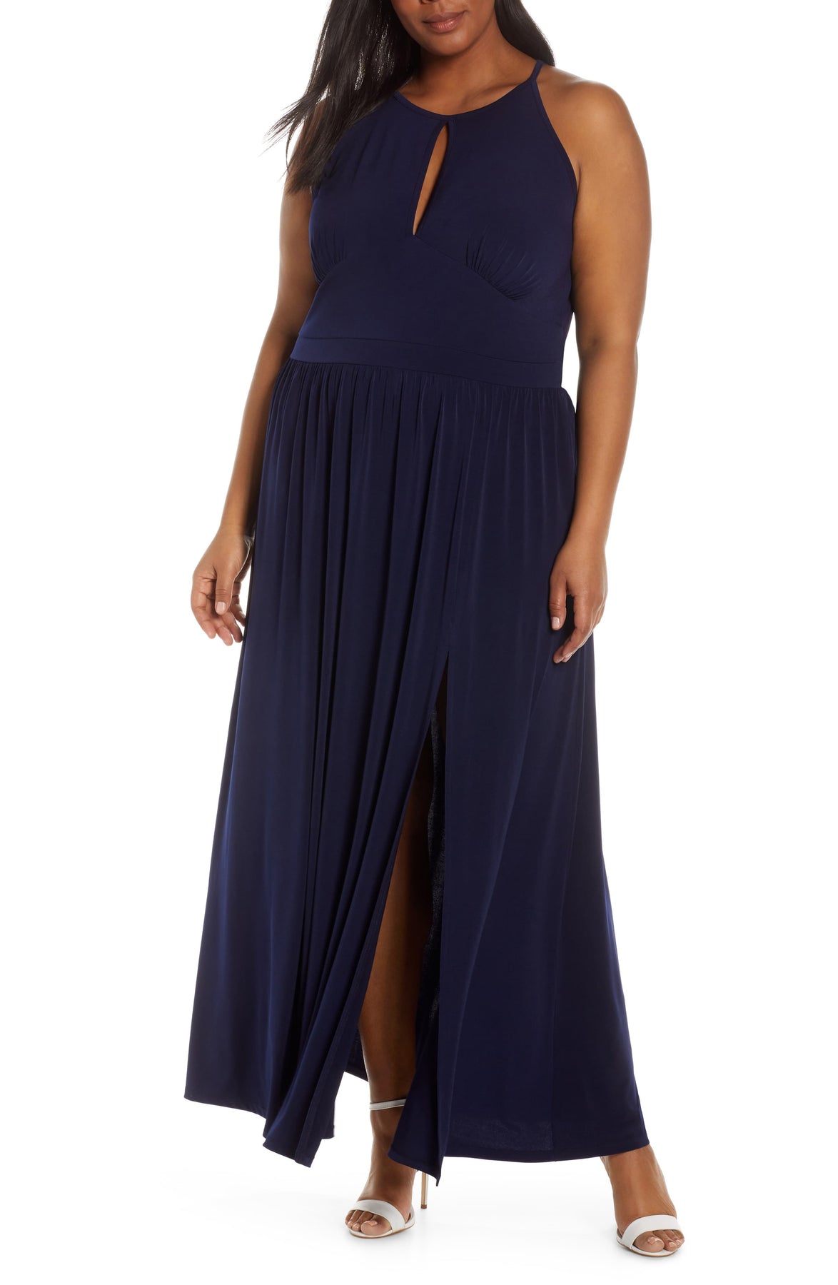 This MICHAEL Michael Kors Maxi Dress is guaranteed authentic. Its crafted with 95% Polyester/5% Elastane. Sunny-season soirées are the perfect reason to pop on this full-length dress thats ready to show off your tan from its keyhole neck to its leg-flashing slit. 60 length (size 2X) Back keyhole button-loop closure Jewel neck Sleeveless Unlined 95% polyester, 5% elastane Machine wash, dry flat Imported Encore