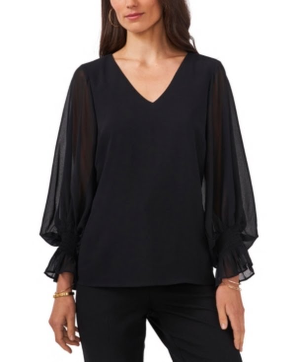 Upgrade your wardrobe with the stunning Msk Womens Black Sheer Lined Smocked Cuff Balloon Sleeve V Neck Top. This versatile and chic piece is designed to elevate your style and make a statement. The top features a flattering V-neckline that adds a touch of elegance, while the smocked cuffs and balloon sleeves create a trendy and fashionable look. Crafted with meticulous attention to detail, this top is made from high-quality sheer fabric that adds a hint of allure to your ensemble. The lined interior ensures comfort and modesty, while still allowing the sheer sleeves to showcase a subtle peek of skin. Whether youre heading to a special event, a night out with friends, or simply want to enhance your everyday outfits, this black top is a perfect choice. Pair it with your favorite jeans for a casual yet sophisticated look, or dress it up with a skirt or tailored pants for a more formal occasion. With its flattering silhouette, trendy design, and timeless black color, the Msk Womens Black Sheer Lined Smocked Cuff Balloon Sleeve V Neck Top is a must-have addition to any fashion-forward wardrobe. Embrace effortless style and make a lasting impression wherever you go.