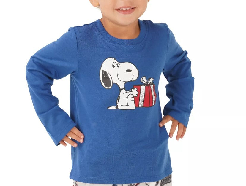 Snoopy brings fun holiday style to this matching pajama set from Munki Munki.