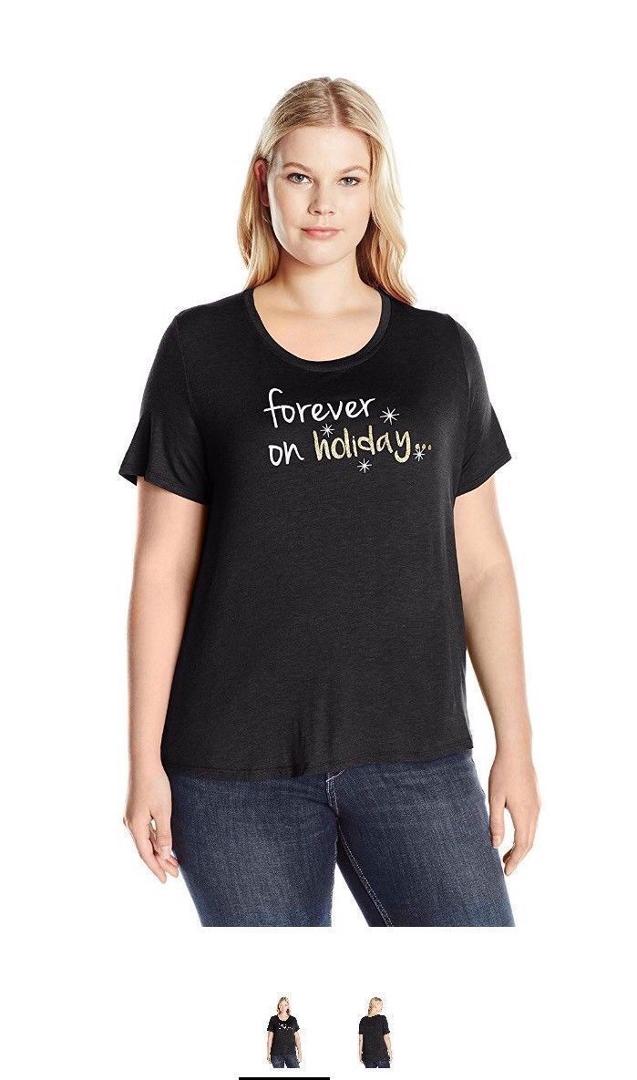Description: Color: Black Size Type: Plus Size (Womens): 1X/BlackSleeve Style: Short Sleeve Style: Knit Top Occasion: Casual Material: Rayon. Features: NeTOP1X/BlackRayon/spandex Female Graphic Tee, T-Shirt Adult