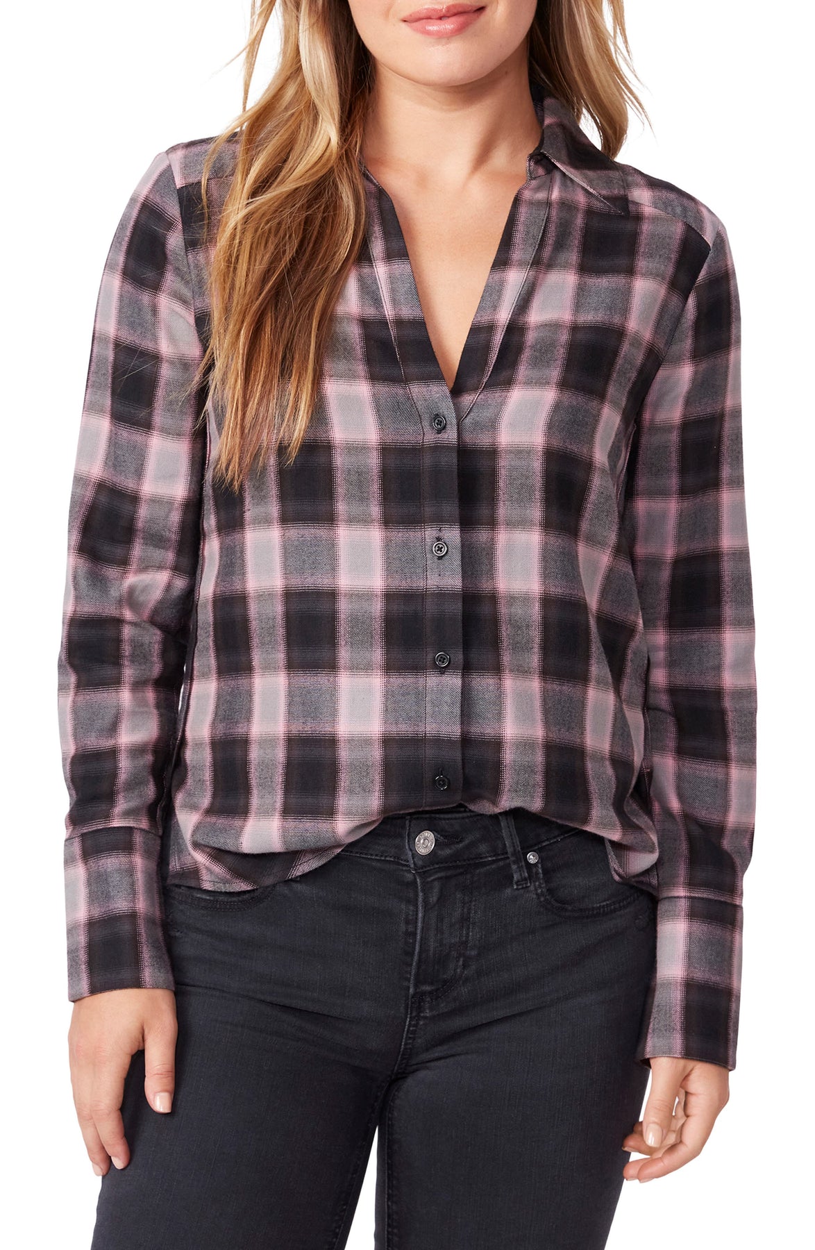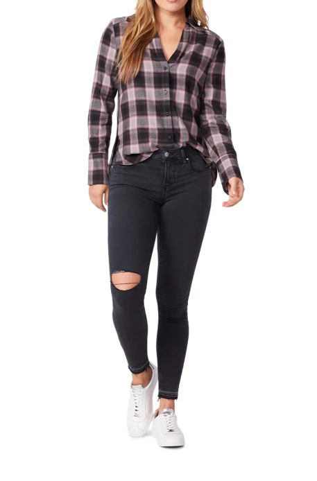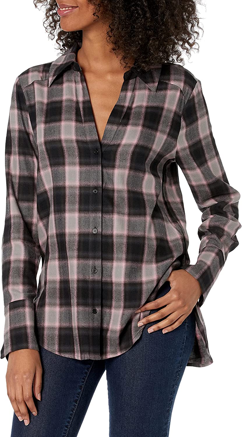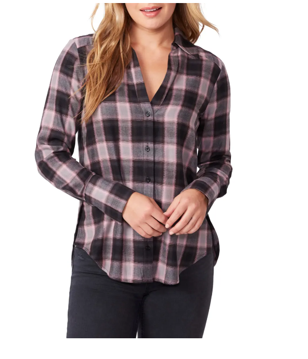 Cozy allover checks enliven this cotton-blend button-up shirt styled in an easy-to-tuck-in fit. 27 1/2 front length; 29 1/2 back length (size Medium) 55% cotton, 45% rayon Dry clean or machine wash, line dry Imported.Due to variances in monitor color, and lighting, the color of some items may differ slightly from the photographs