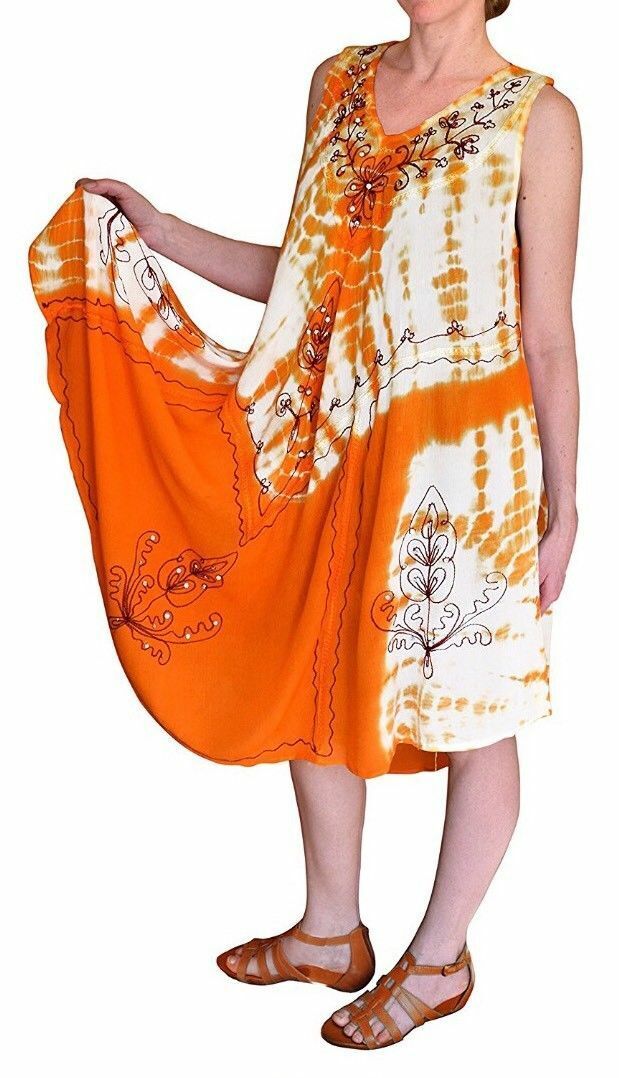 Peach Couture Embroidered Umbrella Sun Dress Sundresses Caftan New By Peach Couture (A Registered Trademark Company) Look and feel beautiful in these sparkle and gem tie dye dresses for the Spring and Summer of 2015! Light and sheer for those warmer days. Use as a bathing suit cover up to the beach or pool. Sleeveless and v neck scoop design that flows past the knee with a handkerchief hem. ONE SIZE loose fit for ultimate comfort and the perfect fit.
