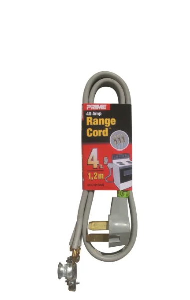 Prime Wire and Cable 4 ft. 40A 3-Wire Range Cord Prime Wire and Cable 4 ft. 40A 3-Wire Range Cord Features: For use in US Includes strain relief kit Ring terminals for secure connections AMP: 40 The 3-wire cord fits most homes built prior to 1996