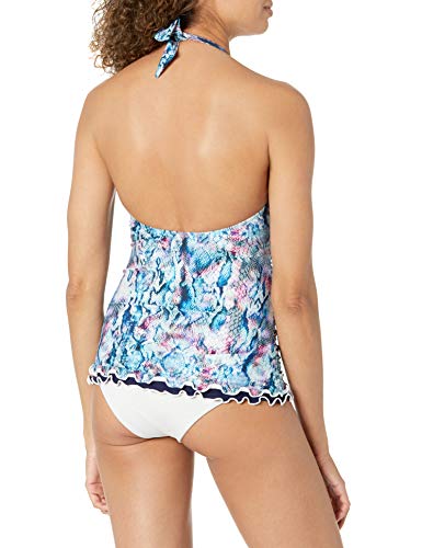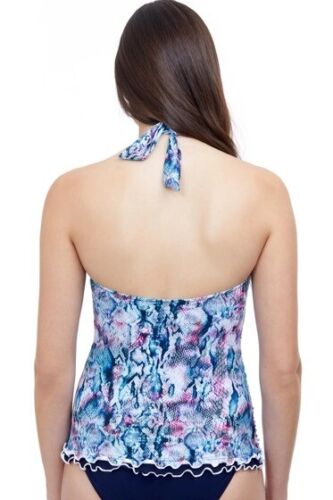 Profile by Gottex MULTI BLUE Snake Charm Tummy-Control Tankini Swim Top US 38Features: Profile by Gottex takes your poolside style to the next level with this printed-to-perfection tankini top complete with a tummy-control panel to help smooth your silhouette. Non-removable soft cups. Lined. V-neck with ruffle trim. Pullover styling; halter straps. Tummy-control panel. Style #: E21091B88-Multi Blue Shell lining: polyamide/elastane Imported.