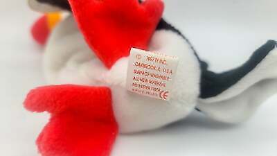 This Ty beanie baby plush is in new condition. Tag is encased in plastic. Comes in an acrylic case, perfect for beanie baby collectors! Puffer The Puffin 1997 Ty Beanie Baby w/ Tag Errors Retired Mint Rare Look This listing is for (1) Puffer The Puffin 1997 Ty Original Beanie Baby W/ Tag Errors. Errors include: extra space between do and ? on hang tag, extra space between away and ! on hang tag, No space between OakBrook, No Stamp on Tush Tag (means not mass produced), and Tush Tag has both REG NO PA & 1965 (KR) Means part of the Korean Market. Beanie baby does include tag protector as pictured. I recently purchased a collection of TY Beanie Babies. There are some of the rare edition with errors. They have never been played with and in mint condition. This is the perfect collectible for any TY Beanie Baby Fan or if you are missing this specific one for your collection. No returns.