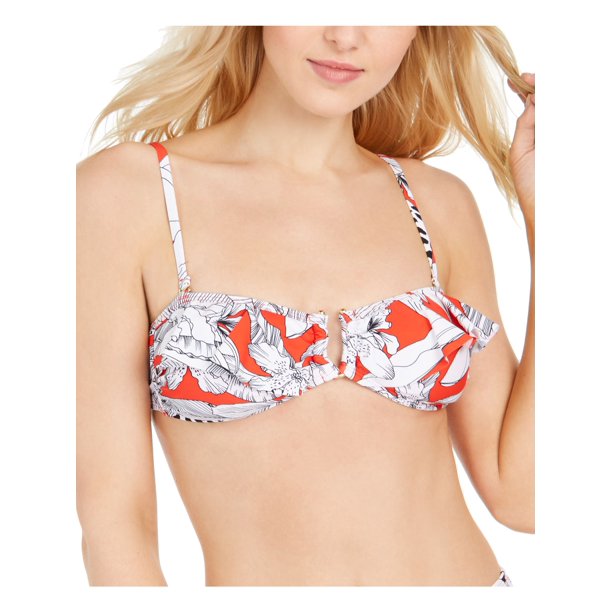 RACHEL RACHEL ROY Womens Swimwear Island Getaway Floral Bandeau. RACHEL RACHEL ROY Material: Nylon Blend Color: Red Floral Bandeau Top U-Wire Removable Cups Bikini Convertible Ruffled StretchDue to variances in monitor color, and lighting, the color of some items may differ slightly from the photographs
