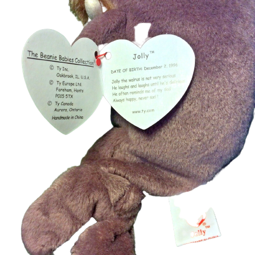 Jolly is a part of the Ty Beanie Babies product line. This plush toy comes with all its original tags in mint condition. Snag Jolly today! It s the perfect Walrus to give your kids your friends or a TY collector. Great for Birthdays Easter Baskets Christmas gifts and more! The Beanie Babies Collection Jolly P.V.C. Pellets 1996 TY Inc. See list below for Rare Errors. Errors on the Swing Tag are as follows: There is an extra space between sad and the ! U.K. is missing after P015 5TX Is Fareham, Hants Has a Swing Tag Protector. Errors on the Tush Tag are as follows: There is a double space between IL. and U.S.A. No Stamp on the inside of the Tush Tag indicates Jolly is 1st Edition. P.V.C. Pellets indicates Early Generation. Pictures are of the exact item that you will be receiving. Thanks for looking!