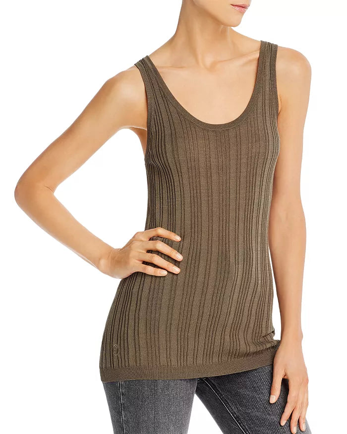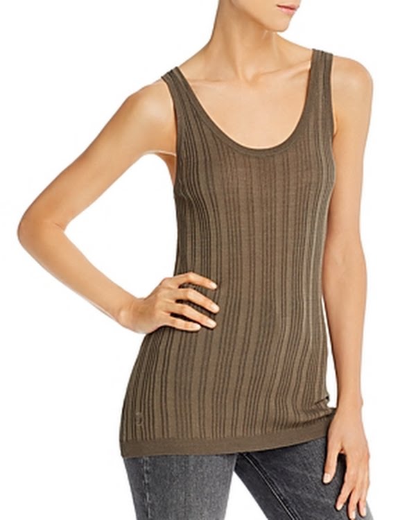RODUCT DETAILS Fits true to size, order your normal size Model measurements: 510 height, 33.5 bust, 23.5 waist, 34.5 hips, wearing a size small Scoop neck Sleeveless Pullover style Allover ribbed knit Imported MATERIAL & CARE Viscose/rayon. Machine wash gentle/delicates