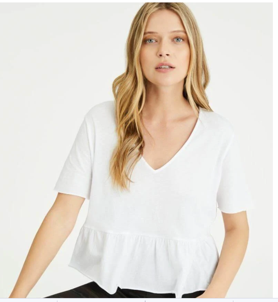 The lightweight Sanctuary Soft V Babydoll Tee offers a relaxed fit and flounce hem. V-neckline. Short sleeves. Lightweight with flounce. Relaxed fit. Pull over style. 100% cotton. Machine wash, tumble dry. Imported. Measurements: Length: 21 in Chest Measurement: 36 in Sleeve Length: 8 in Product measurements were taken using size XS (US 2). Please note that measurements may vary by size.
