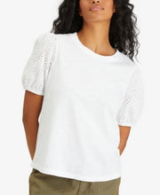 Sanctuary Not So Basic Tee-Women. Get all of the comfort and cuteness cotton has to offer in this not-so-basic jersey T-shirt framed in embroidered-eyelet puff sleeves. True to size. XXS=0, XS=2, S=4-6, M=8, L=10, XL=12, XXL=14. 23 length Crewneck Short sleeves with elastic cuffs 100% cotton Machine wash, tumble dry Imported Womens Clothing Item #6132575Box I130 (XXL/White-1)