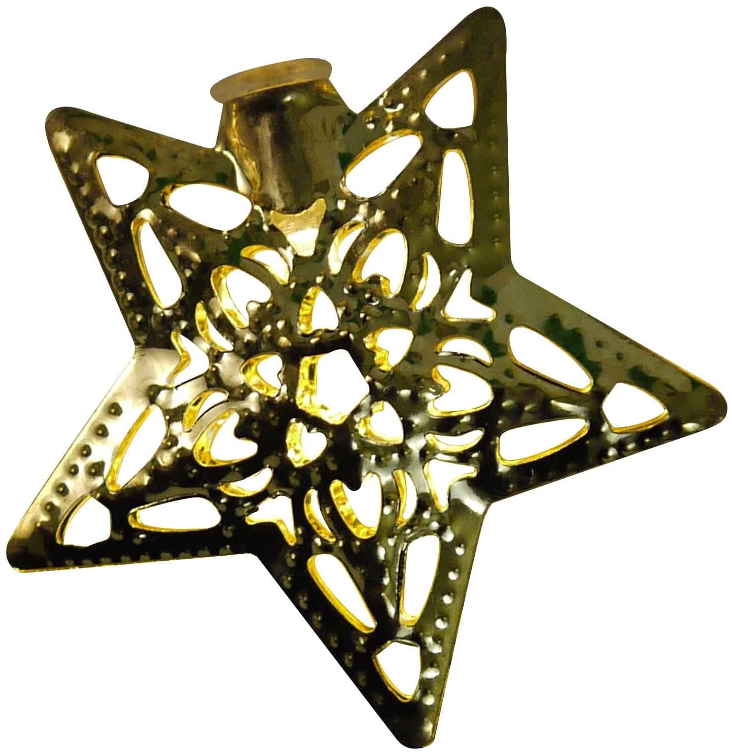 Light up any space with this brightly colored 20-Lighted Gold Star Metal Cap Light Cap Light strand measures 54 inches long to serve decorating needs Steady On/Off Lights Function Designed with 42 inches of lighted length with 6 inches between lights Battery Operated (batteries not included with purchase)Due to variances in monitor color, and lighting, the color of some items may differ slightly from the photographs