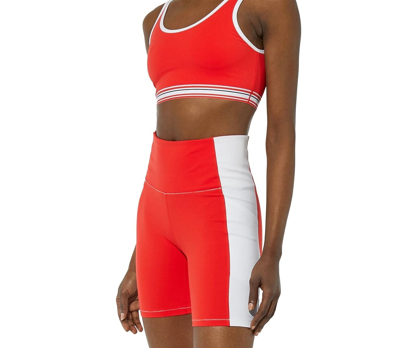 Solid & Striped Pocket Bike Shorts-Women. SIZE & FIT Fits true to size, order your normal size 10 rise, 6 inseam, based on a size small Model measurements: 510 height, 33.5 bust, 23.5 waist, 34.5 hips, wearing a size small PRODUCT DETAILS Wide waistband Side pockets Made for gym and training activity Medium compression fabric Pull-on style Imported Web ID: 3992741 MATERIAL & CARE 80% nylon/20% elastane Machine wash