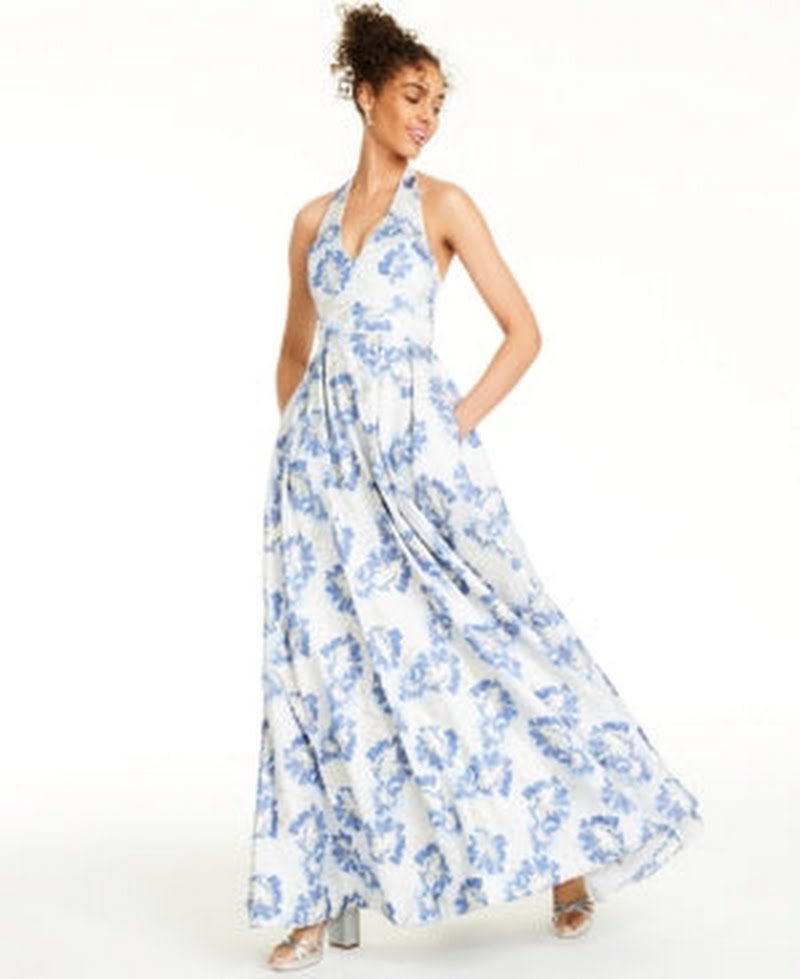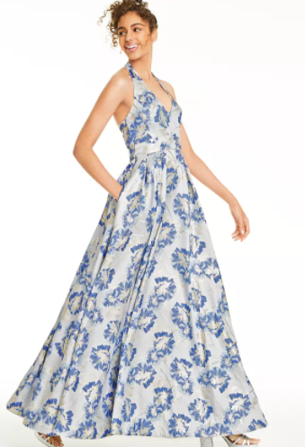 Speechless Juniors Metallic Floral Brocade Halter Gown, Juniors Juniors Clothing -