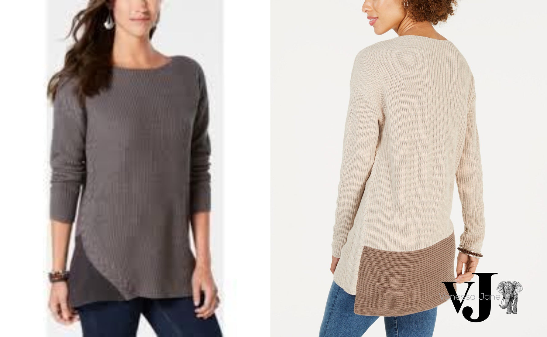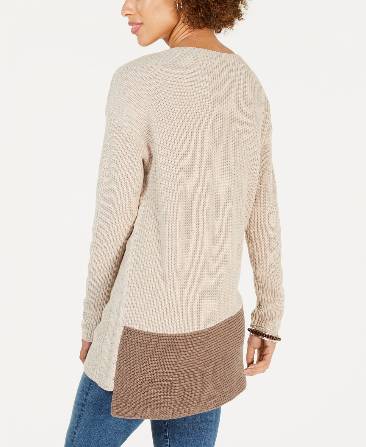 Style andamp; Co Petite Colorblocked Tunic Sweater, Petite Clothing - Sweaters. Hits at hip Designed to fit and flatter 54 and under frame Crew neckline Colorblocked at sides and back Cotton/acrylic Machine washable