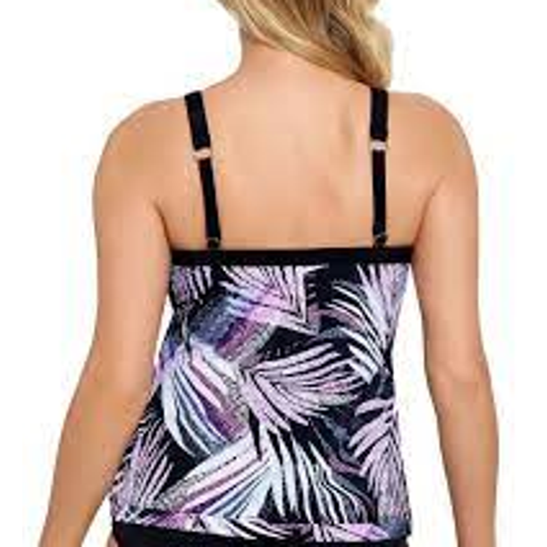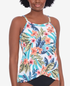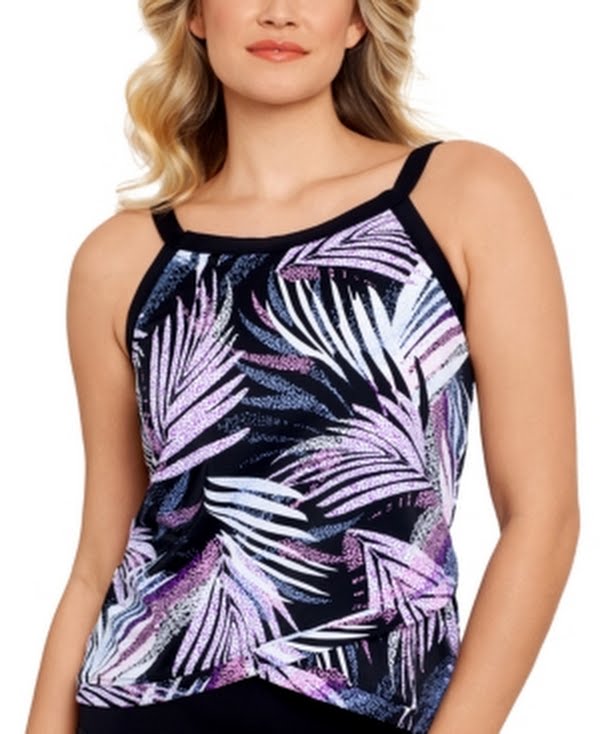 Swim Solutions SPRINKLE LEAF Printed Underwire Crossover-Hem Tankini Top, US 10Features: A chic tropical print and crossover hem freshen this look from Swim Solutions, a high-neck tankini top with underwire for added support. No cups. Pull-over styling; adjustable over-the-shoulder straps. High neckline; crossover hem. Lined. Hand wash. Style #: 5536920 Nylon/spandex; Imported SWIM SOLUTIONS Size: 10 Material: Nylon Blend Color: Black High Neck Tankini Crossover-Hem Lined Adjustable Stretch