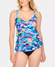 A vibrant print comes to life with rows of tiers on this one-piece swimsuit from Swim Solutions, designed with a tummy-control panel and adjustable straps to help ensure the perfect fit. Model is wearing a size 10 Non-removable cups with bust support Full coverage Tummy-control panel at front Pull-on styling; adjustable straps V-neck Tiered at bodice Lined Shell: nylon/spandex; lining: recycled polyester/polyester Hand wash Imported