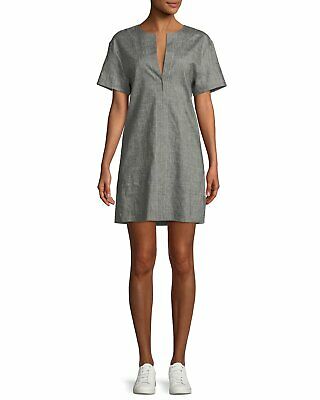Item Notes: Theory dress in sharkskin crunch linen-blend. Split neckline. Short sleeves. Sheath silhouette. Knee-length. Pull-on style. Linen/viscose/spandex. Imported.  Due to variances in monitor color, and lighting, the color of some items may differ slightly...