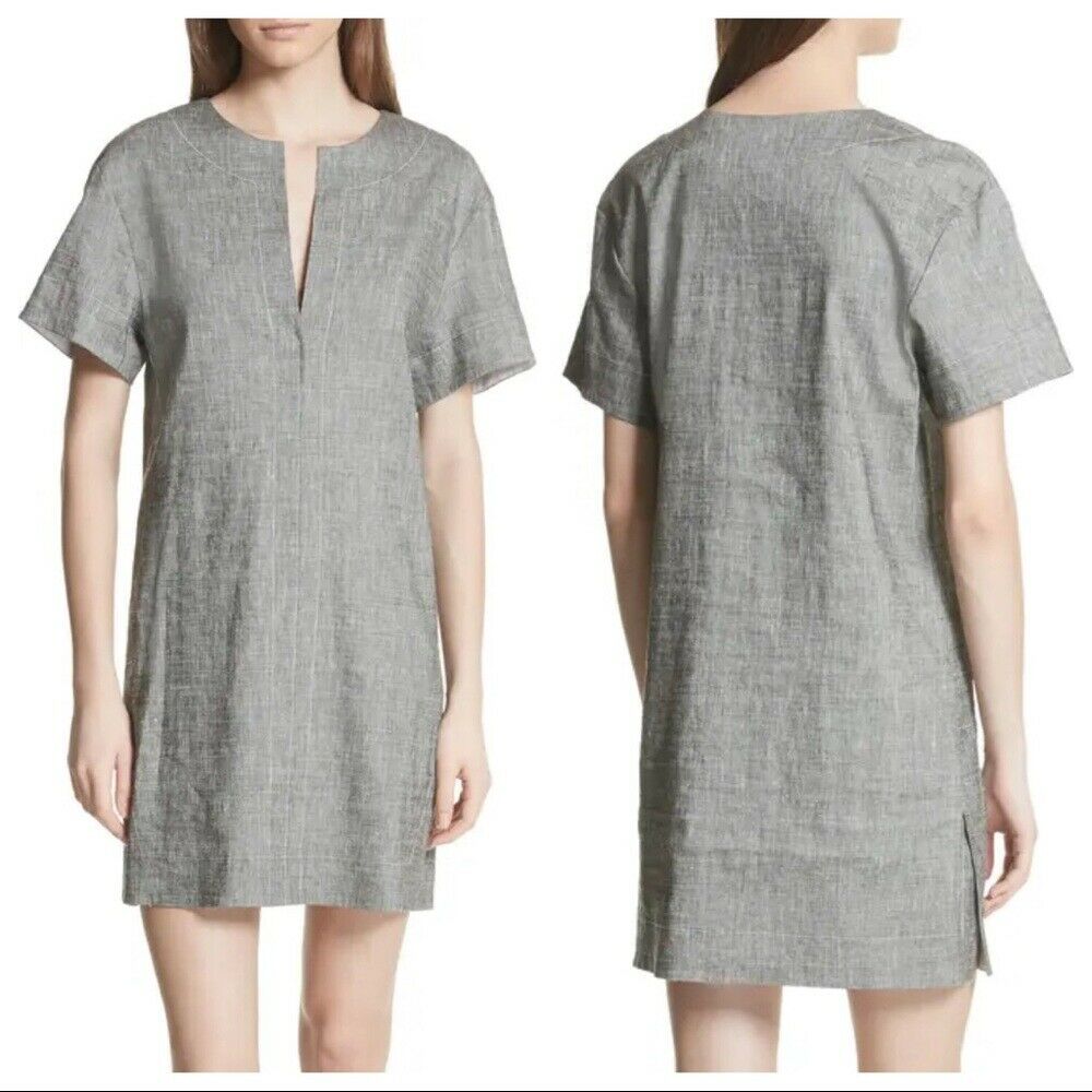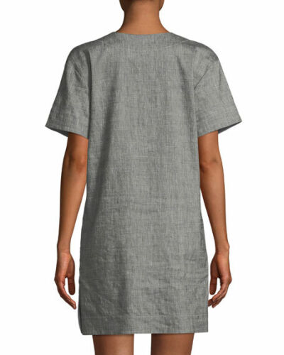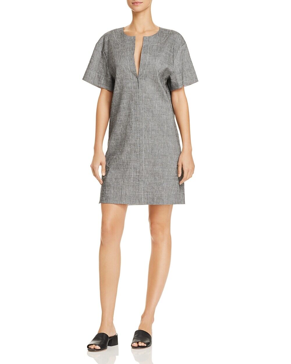 Theory Sharkskin Short-Sleeve Shift Dress, Gray, Size Medium